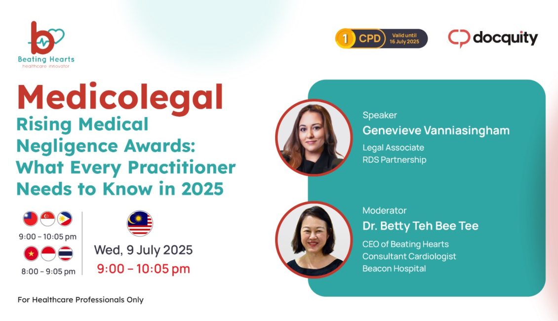 Join us on Wednesday, July 9, 2025, at 9 PM for a webinar titled Medicolegal Rising Medical Negligence Awards: What Every Practitioner Needs to Know in 2025, featuring Genevieve Vanniasingham, Legal Associate at RDS Partnership.